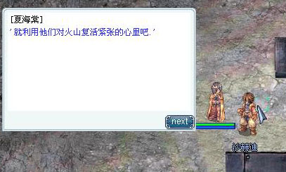 回右下找拉赫迪,利用他们对火山复活的紧张心理,骗骗他们吧……