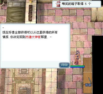 任务条件:完成伯仁斯兄妹任务和拉赫神殿任务报酬:随机获得以下道具中的一种:啼笑的箱子x5,随机箭矢筒(数量不明),摇曳的围裙x1,血迹树枝x1(低几率)。固定base经验1000000。完成伯仁斯兄妹任务后,我来到了拉赫神殿,见到久违的杰德大神官,老杰德用轻松的口吻和我开起了玩笑