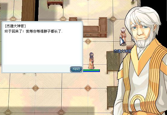 完成伯仁斯兄妹任务后,我来到了拉赫神殿,见到久违的杰德大神官,老杰德用轻松的口吻和我开起了玩笑。